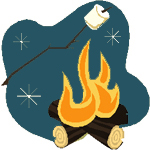Illustration of marshmellow roasting over campfire